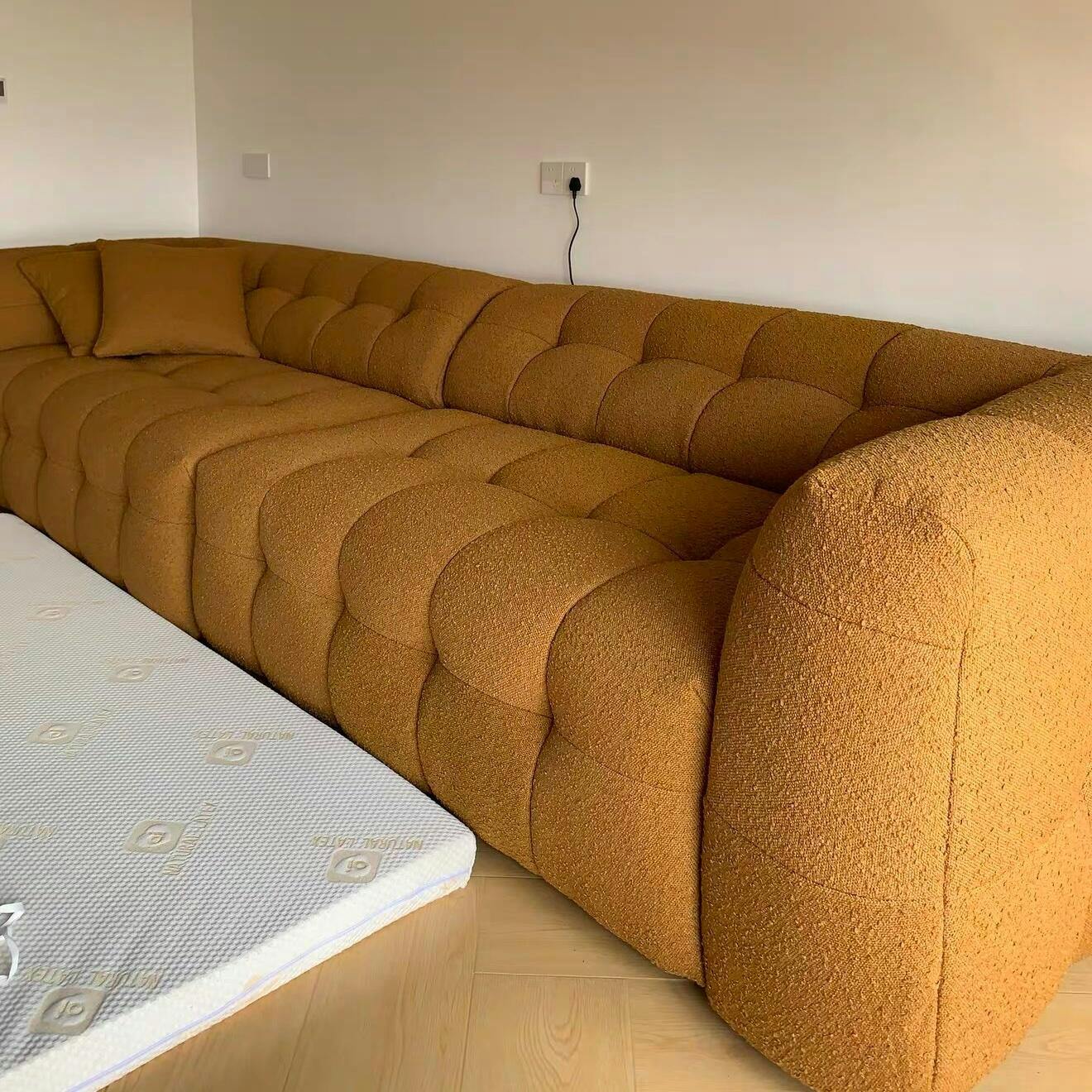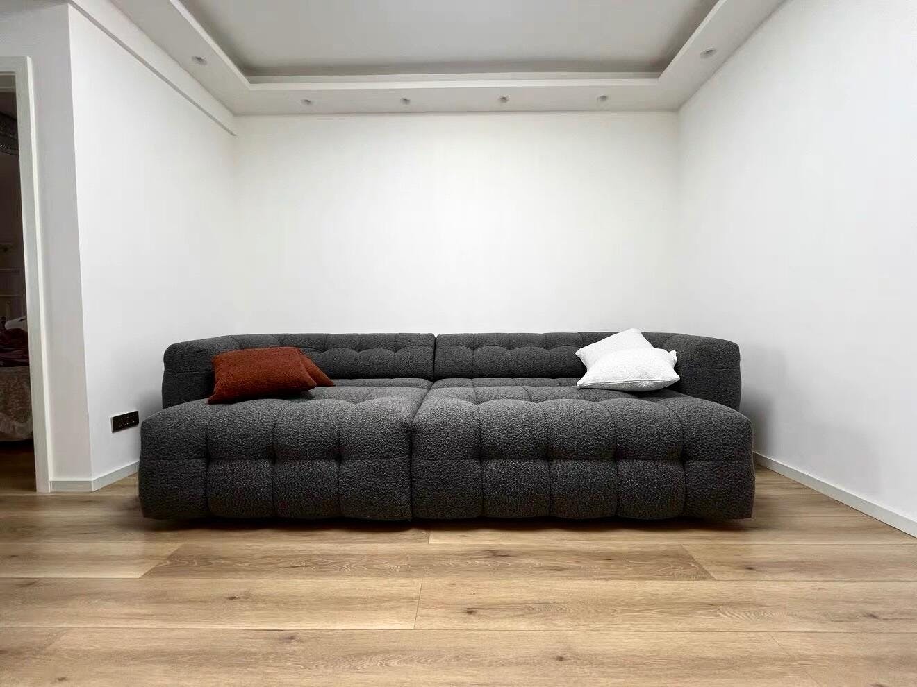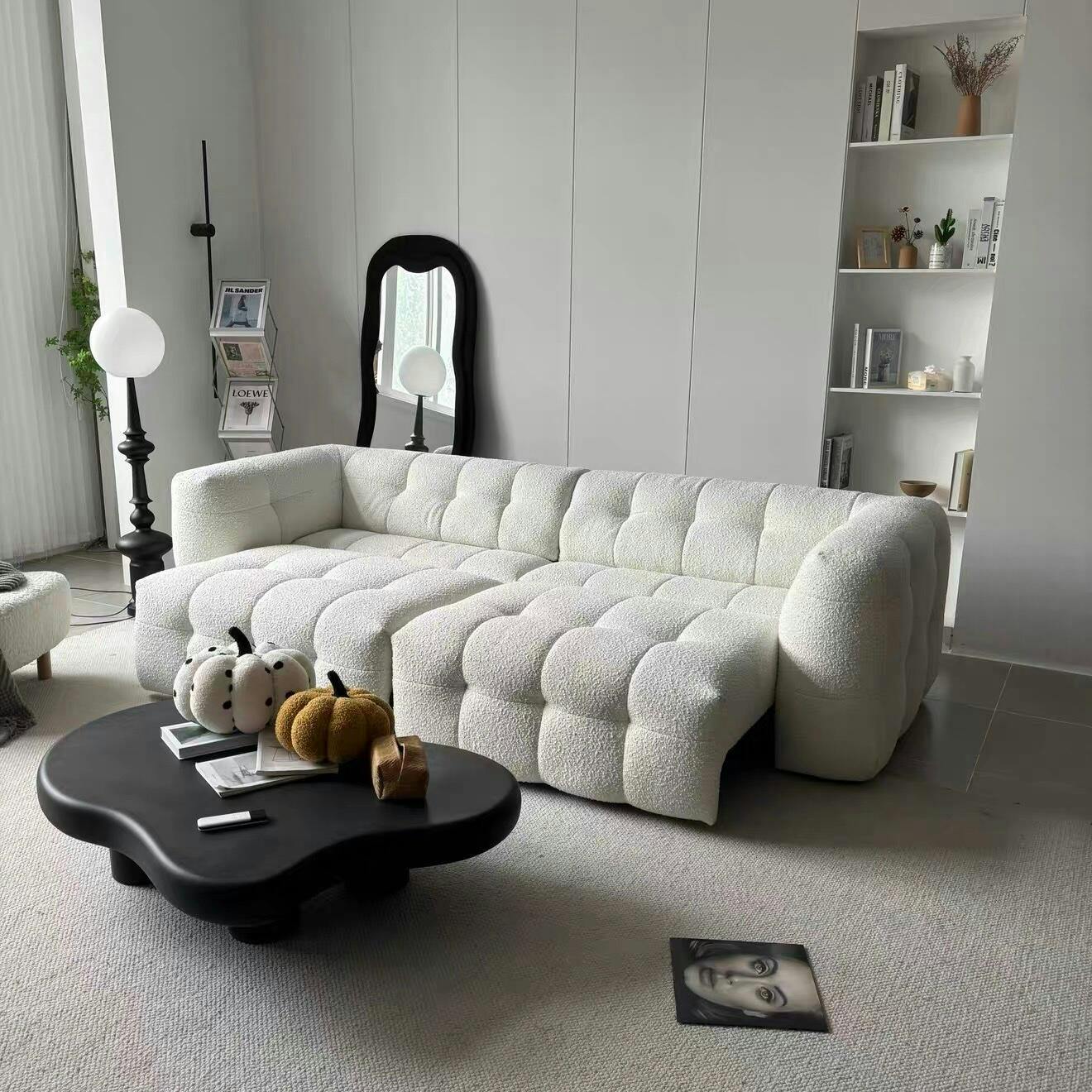 Anakin Extendable Sofa, also known as the Marshmallow Sofa, designed to combine plush comfort with contemporary elegance. Its unique marshmallow-inspired rounded design and motorized mechanism allow you to effortlessly extend or retract the cushions for a tailored seating experience. The sofa comes equipped with reliable hardware for long-lasting performance.