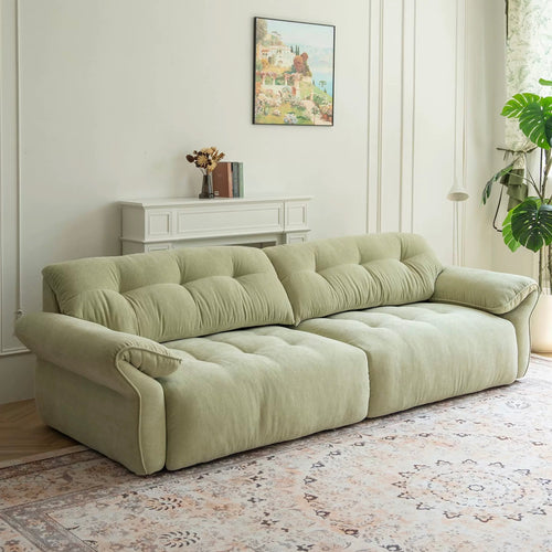 The Benjamin Sofa in linen brings together cloud-like volume, handcrafted tufting, and a refined low-profile shape—made for homes that value quiet luxury and effortless comfort.